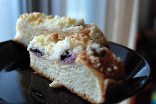 ドイツの菓子パン。ダークチェリーとクリームチーズとクランブルが乗ってます。